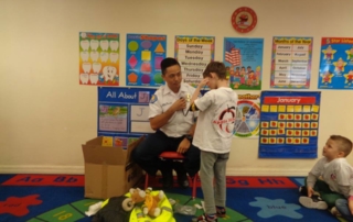 A big thank you to Thura (Ethan and Zoe’s uncle) for coming to APPLE SCHOOL to talk to the kids about his job as an EMT! He brought a ton of things for the kids to see like his helmet, his big coat, and even had a little stuffed toy animal friend explain to the kids what to do in case of emergencies. Thura also showed kids how to bandage up an “ouchie”, and how to properly clean a cut if they suffer one at home. Thura was so kind with all the children in all four classes and all the kids had a blast trying on all the cool things that Thura brought. The kids felt like they had a real hero at Apple School as they all pointed to his shiny badge near his chest. We thank Thura and Myet (Ethan and Zoe’s mom) for coming to Apple School and visiting the kids while also educating them on what he does as an EMT and how to be as healthy as possible. We encourage all members of the community to visit the children of Apple School to give the kids a better feel for what the people do to make our city a better place to live.
